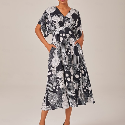 Geometric V Neck Maxi Dress