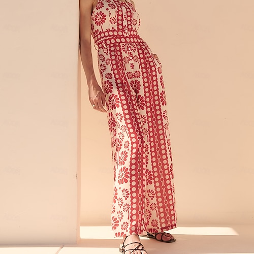 Print Satin Halter Backless Maxi Dress