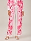 Artistic Print Linen Feel Elastic Waist Wide Leg Pants