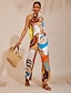 Top sin mangas tipo halter de satén sedoso con estampado abstracto