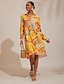 Vestido Casual de Vacaciones de Arte de Pintura al Óleo Bodegón para Mujer Amarillo S M L