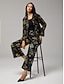 Pantalones rectos de pierna ancha con cintura elástica y tejido elástico, diseño de panel adelgazante frontal