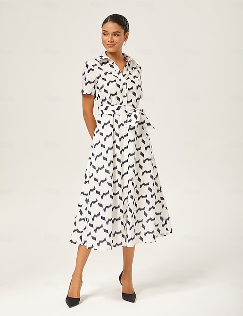 Print Linen Midi Shirt Dress