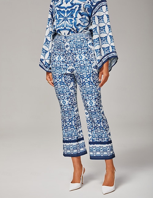 Porcelain Print Stretch Stylish Flare Pants