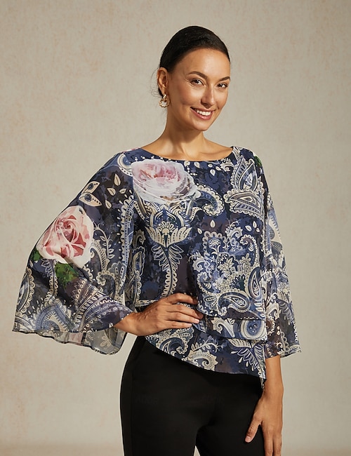 Roman Chiffon Floral Bateau Blouse