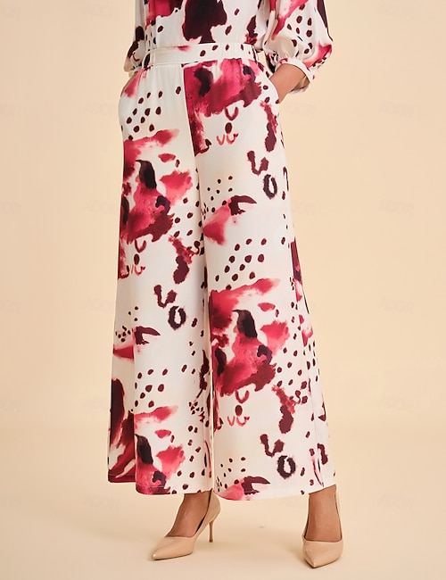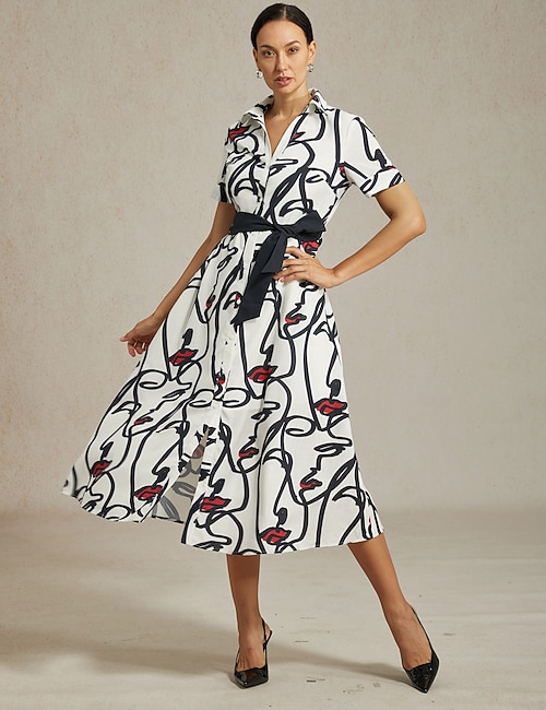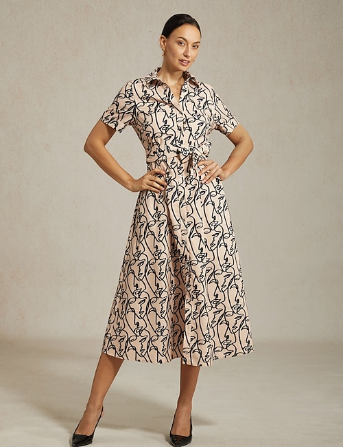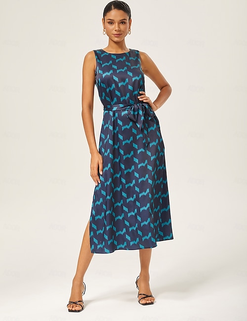 Satin Abstract V Neck Waist Tie Maxi Dress