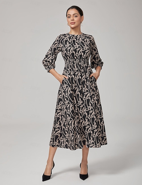 Robe Maxi Imprimée à Manches Longues pour Femmes
