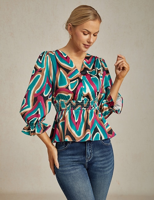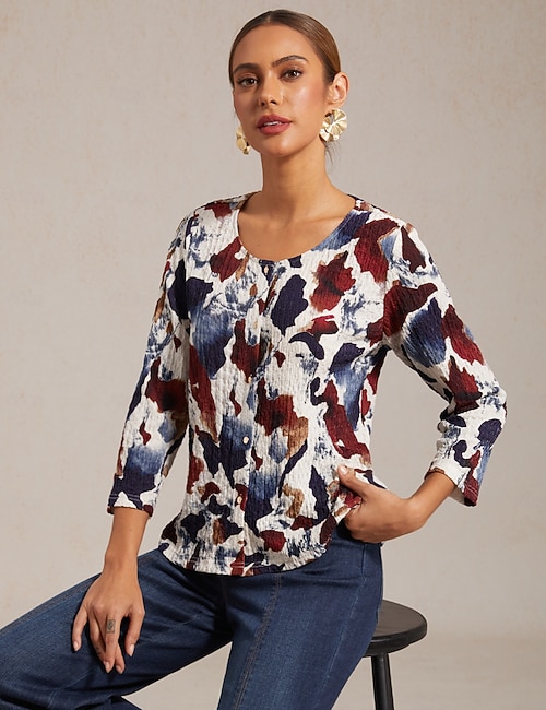 Floral Print Chiffon Sleeve Bateau Neck Blouse