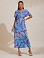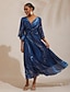 Abstract Satin Dolman Sleeve V Neck Waist Tie Maxi Dress
