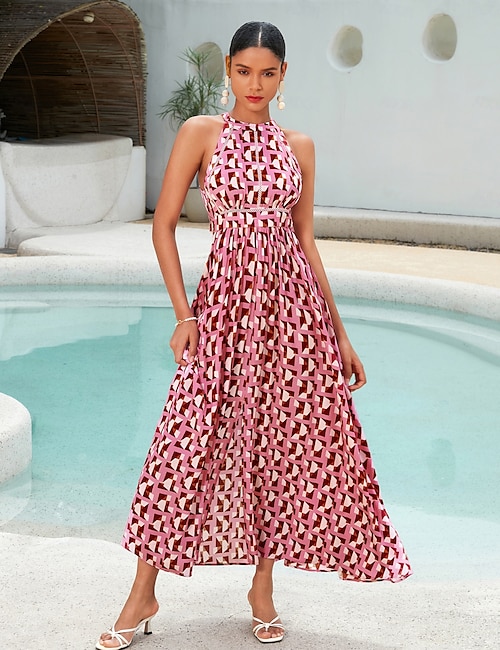 Pattern Halter Neck Maxi Dress