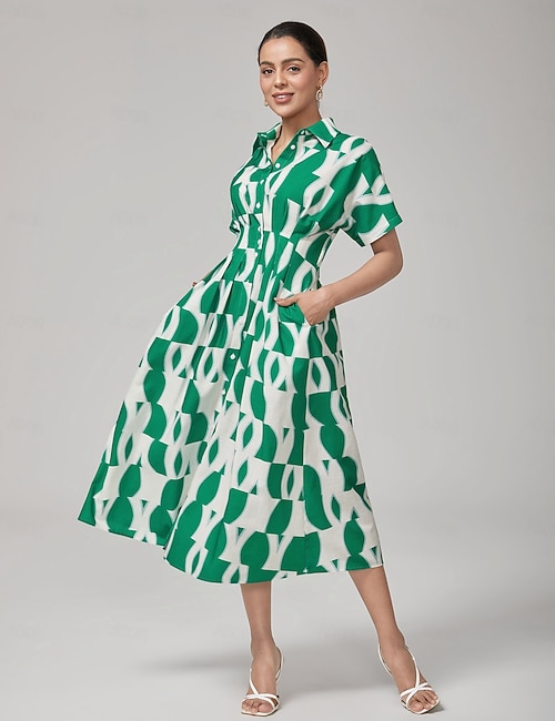 Geometric Retro Pleat Dress