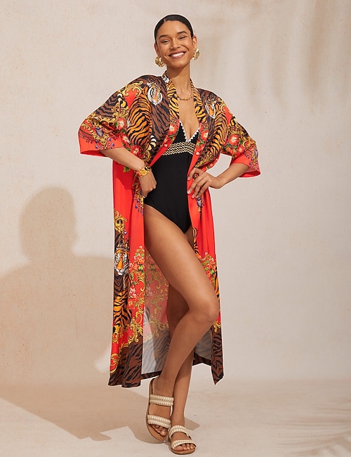 Robe longue imprimée pour femmes tendance mode manches 3 4 ample style décontracté