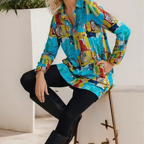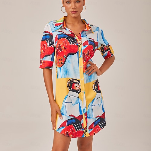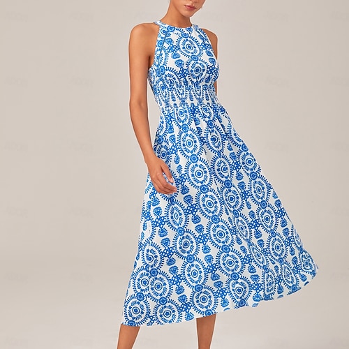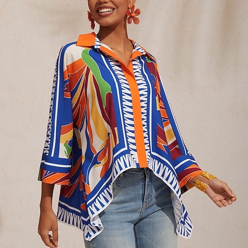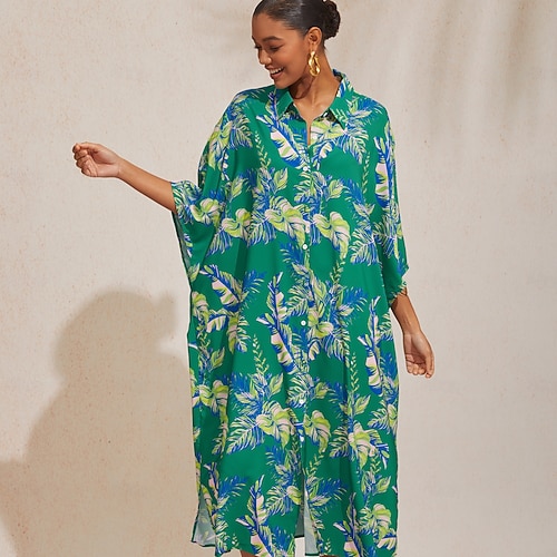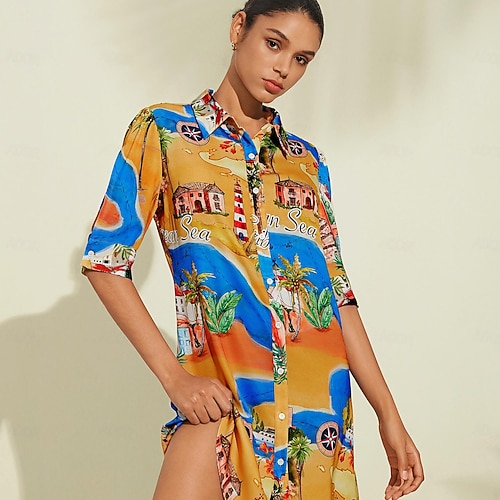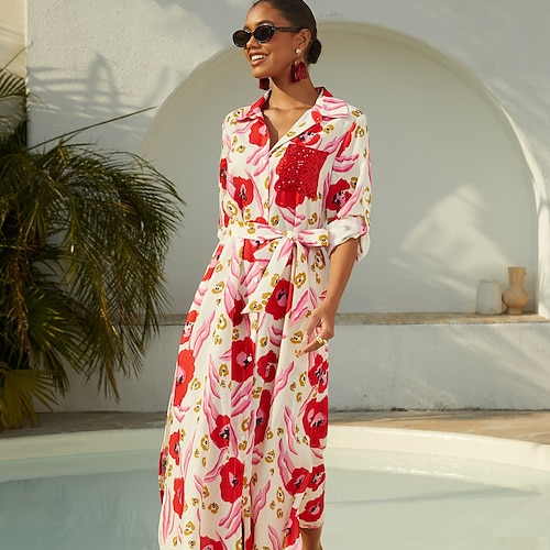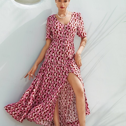 Geometric Resort Wear Maxi Dress Shirt Collar