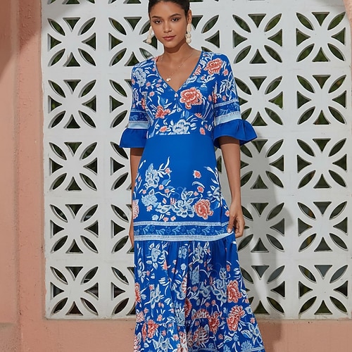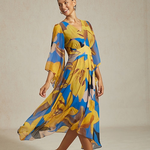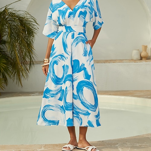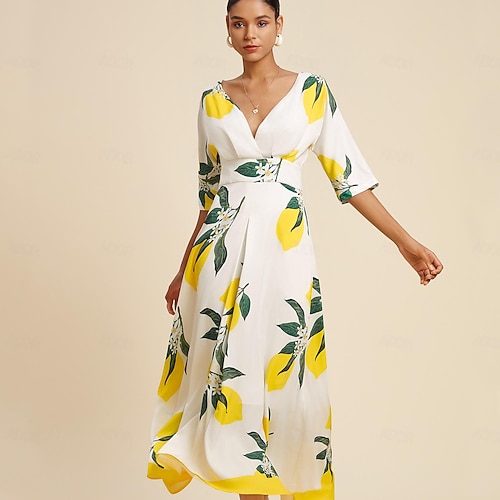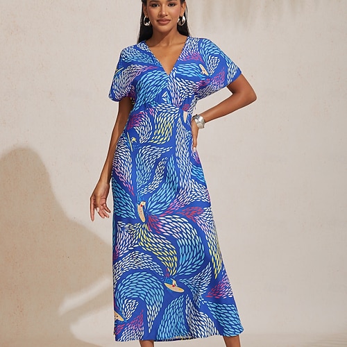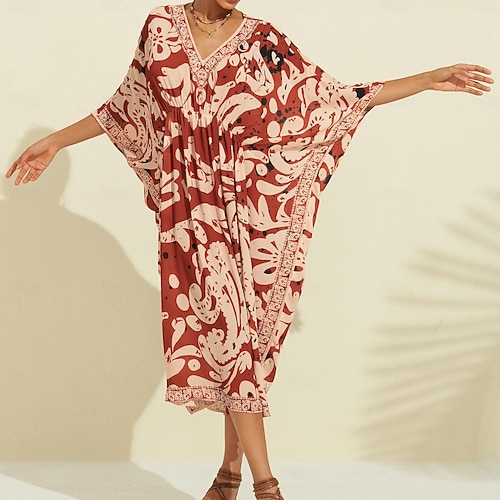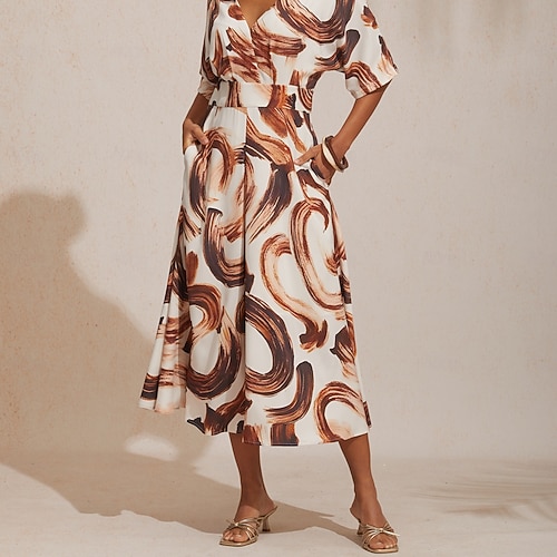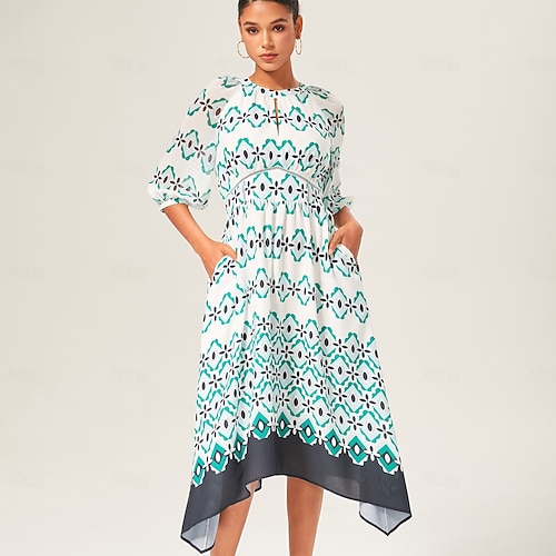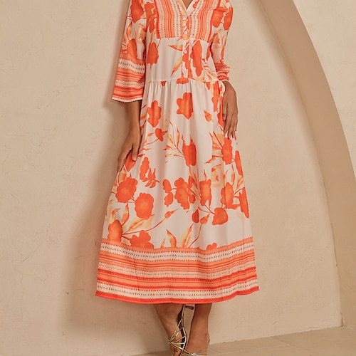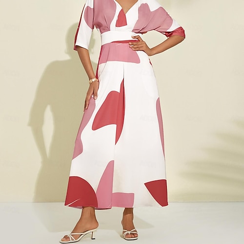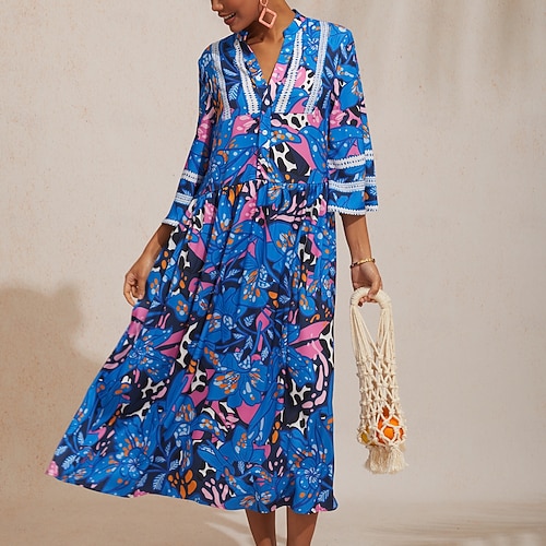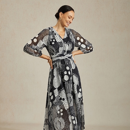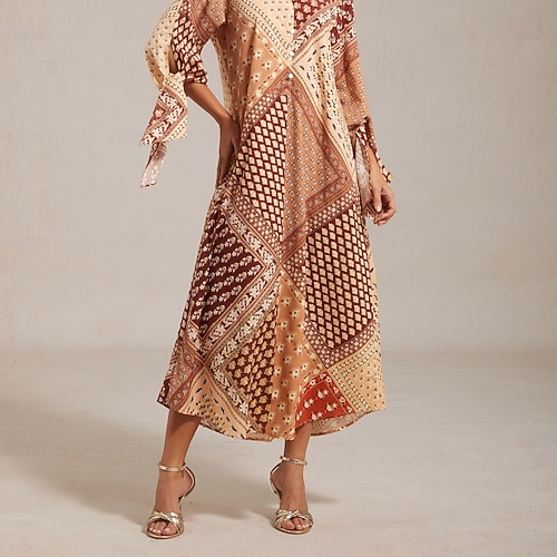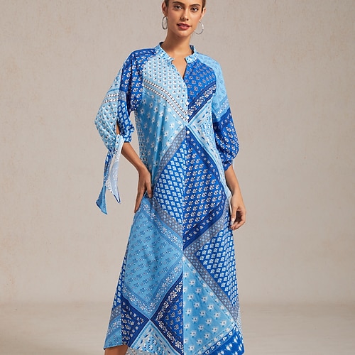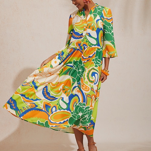 Robe longue imprimée pour femmes tendance mode manches 3 4 ample style décontracté