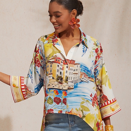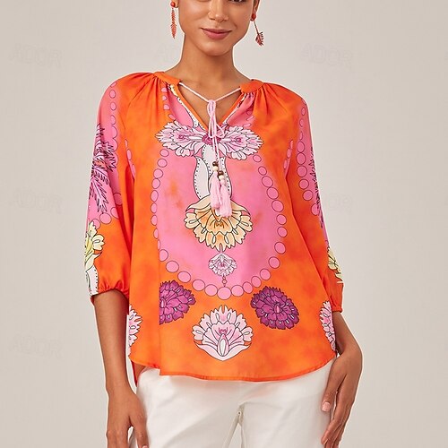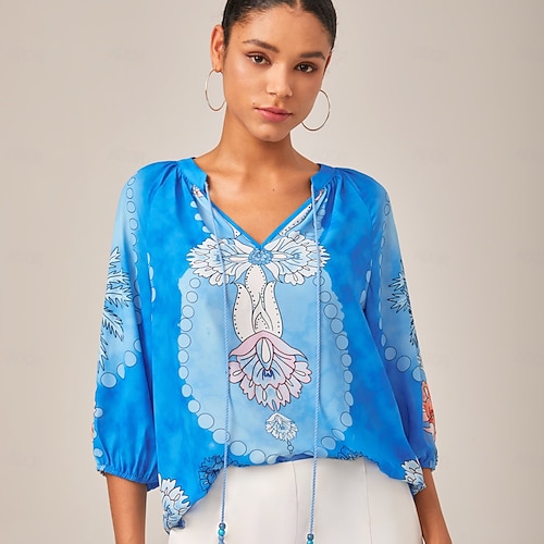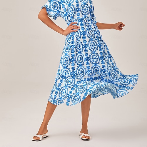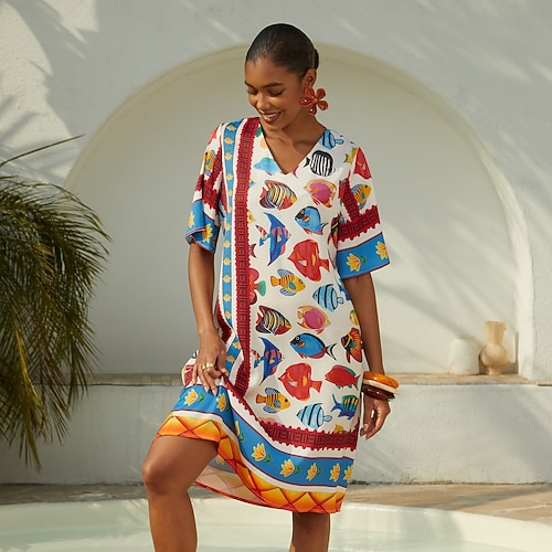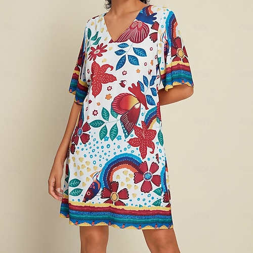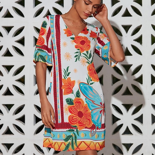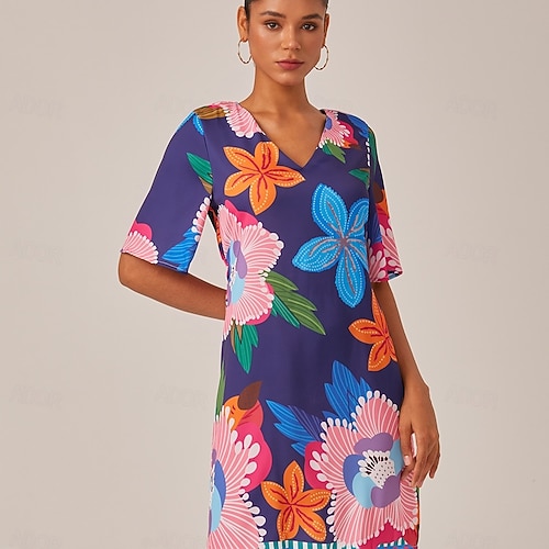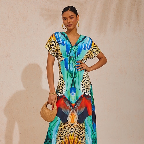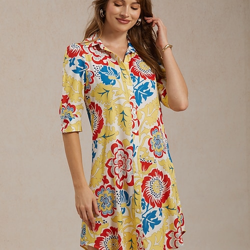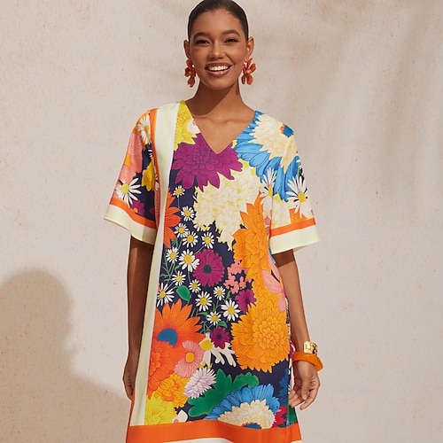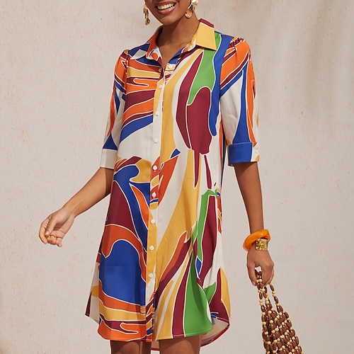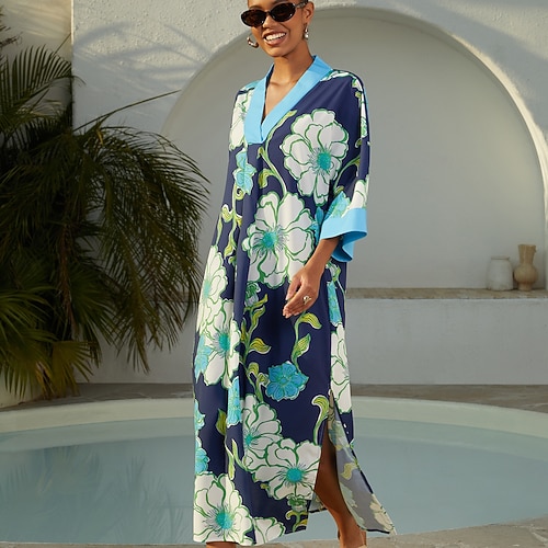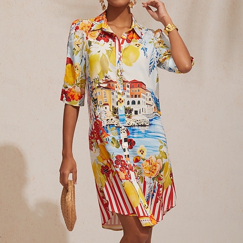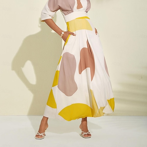 Robe longue imprimée pour femmes tendance mode manches 3 4 ample style décontracté