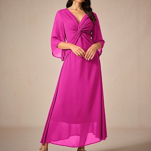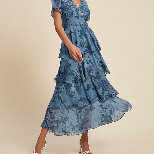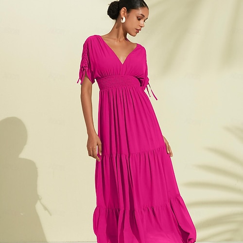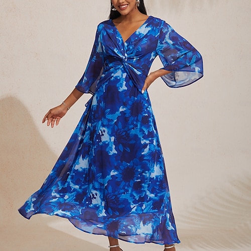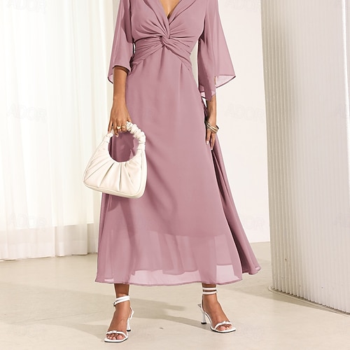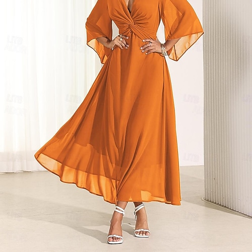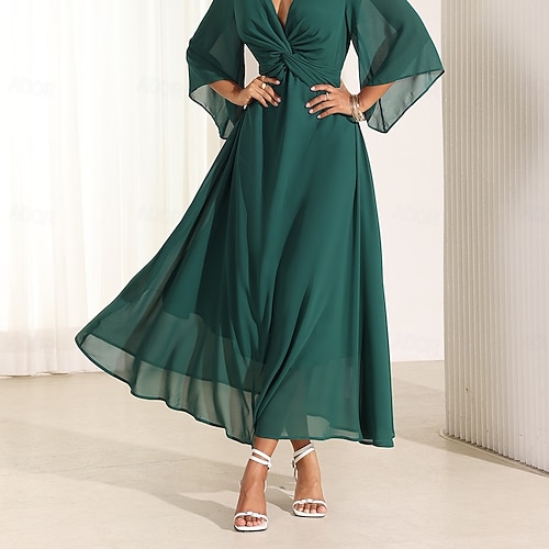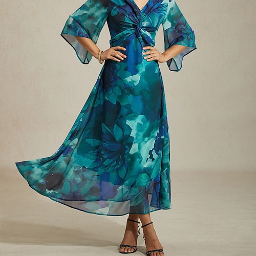Chiffon V Neck Ruffle Twisted Maxi Dress
