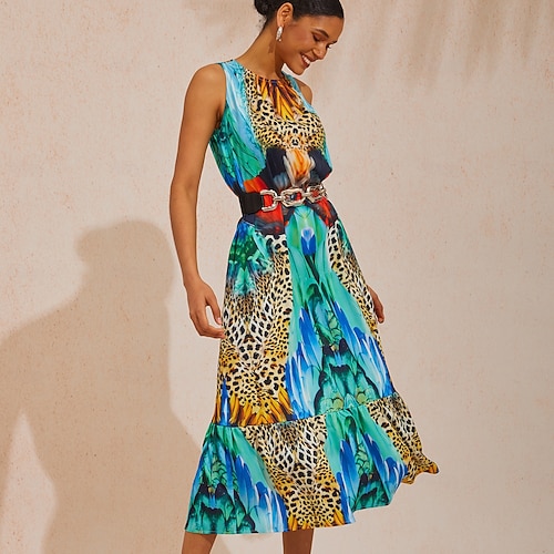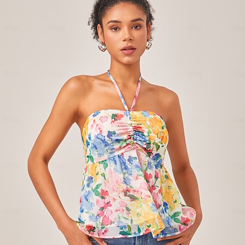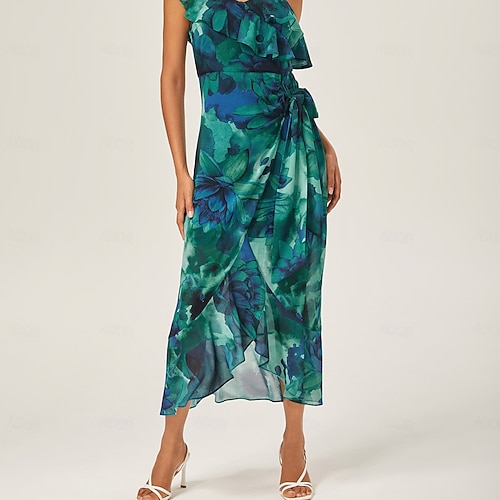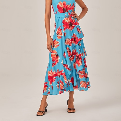 Floral Ruffle Chiffon Sleeveless Maxi Dress
