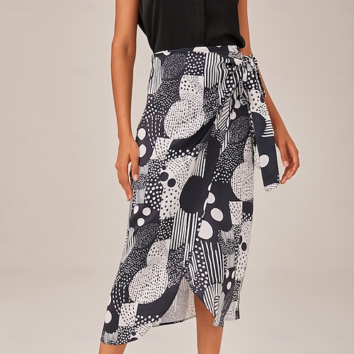Robe pour femmes en noir et blanc à motif géométrique à rayures à chevrons col en V rond coupe ample à double fente confortable pour une tenue quotidienne décontractée et des vacances Blanc