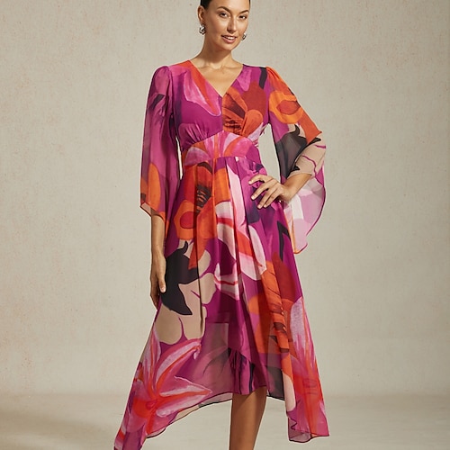 Brand Jacquard Design V Neck Material Chiffon Midi Dress