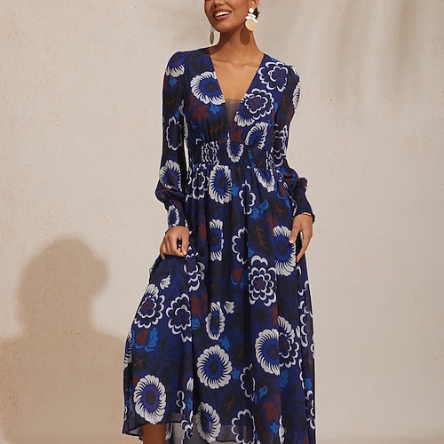 Robe Maxi Imprimée à Manches Longues pour Femmes