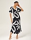 Robe pour femmes en noir et blanc à motif géométrique à rayures à chevrons col en V rond coupe ample à double fente confortable pour une tenue quotidienne décontractée et des vacances Blanc