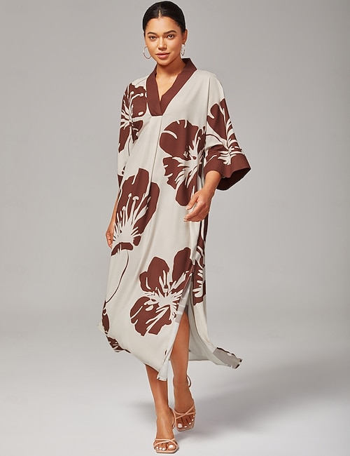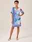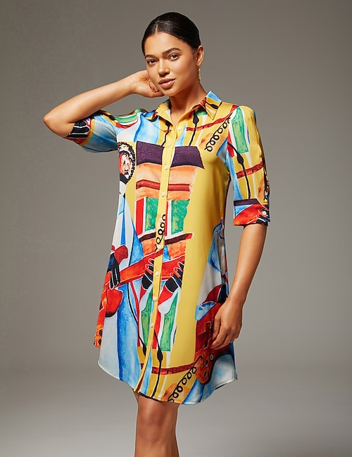 Floral Raglan Sleeves Spun Rayon Shirt Dress
