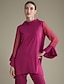 Modal Flare Cuff Blouse & Chiffon Pants Set Flare Cuff Modal Blouse Chiffon Pants Set