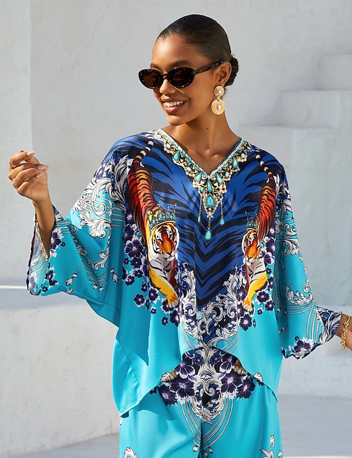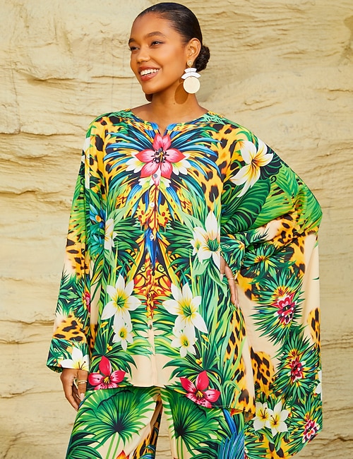 caftan léopard en mousseline fluide pour fête sauvage dans la jungle