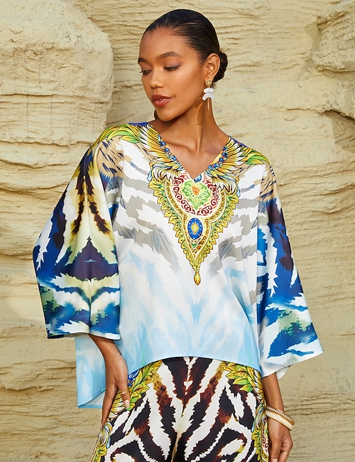 caftan fluide en mousseline à manches chauve-souris, style village de rêve