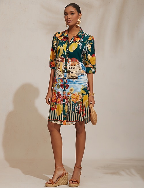Robe chemise d'été soyeuse à fleurs de Santorin