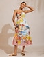 Robe longue fluide en mousseline à fleurs et palmiers hawaïens