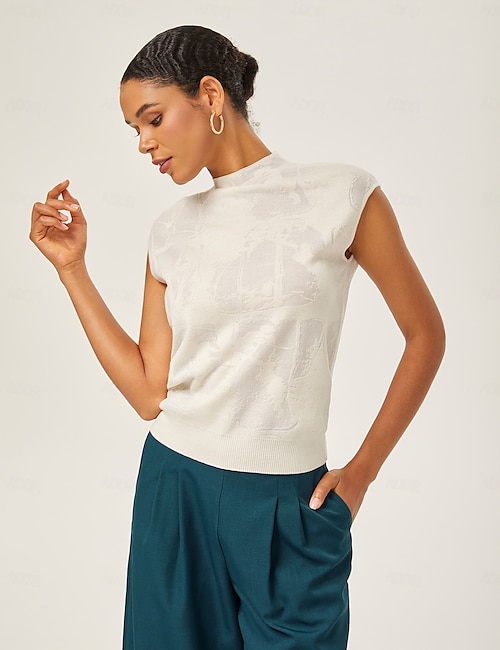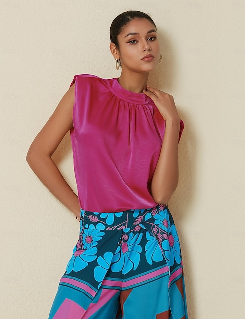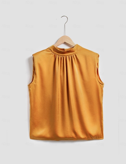 Satin Stand Collar Sleeveless Wide Shoulder Casual Vacation Shirt