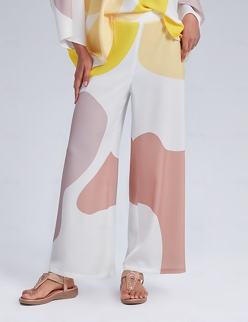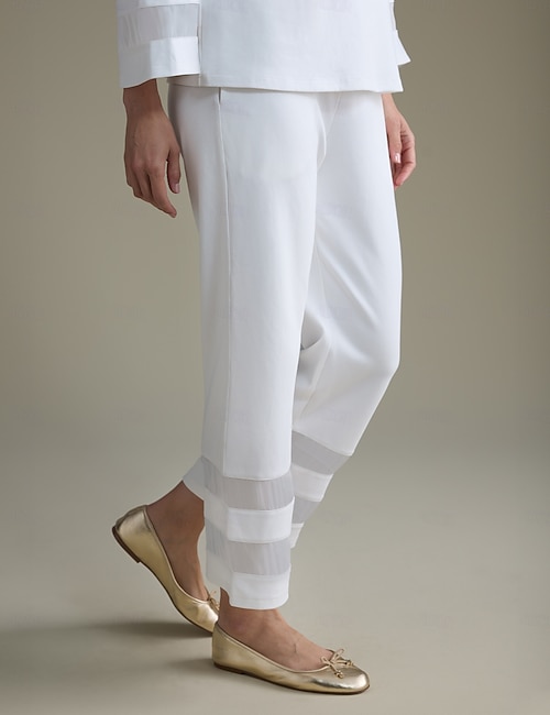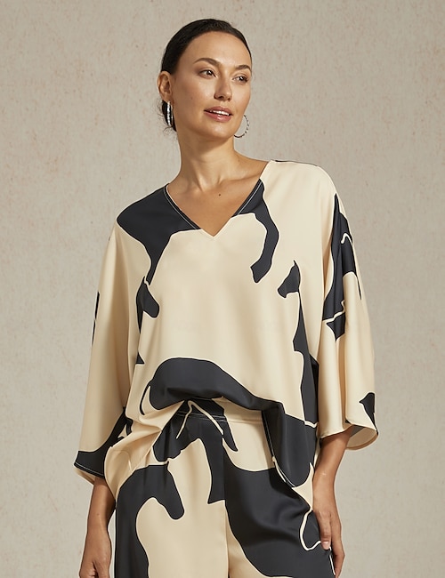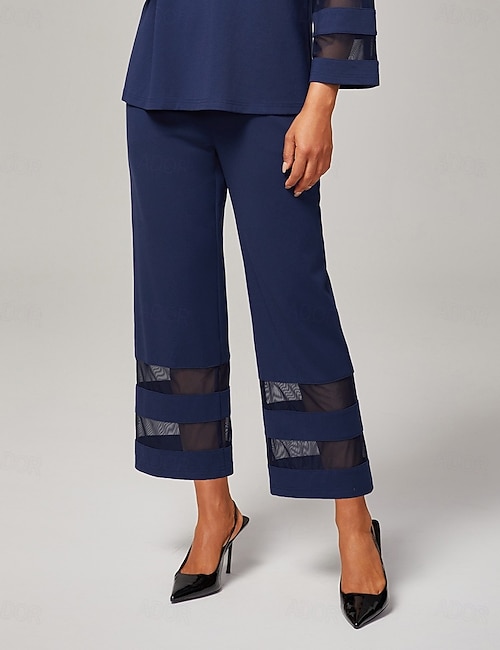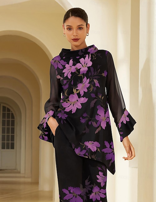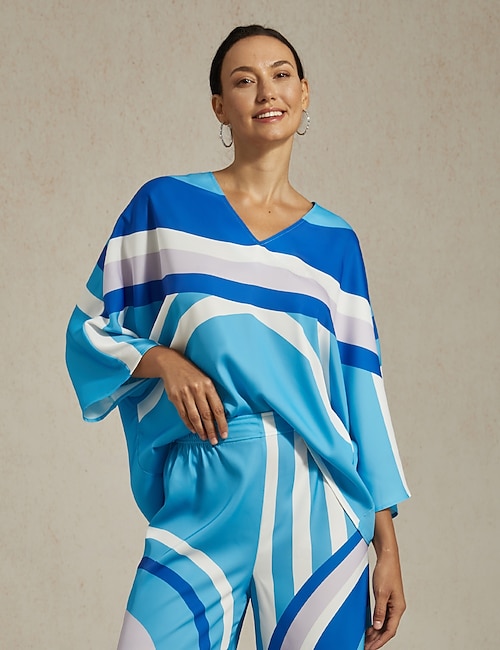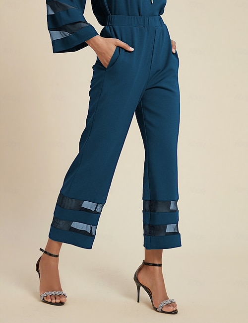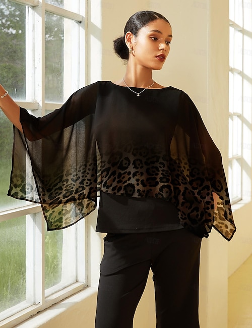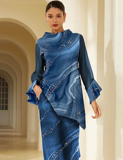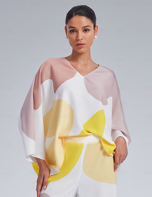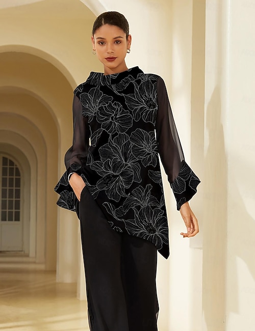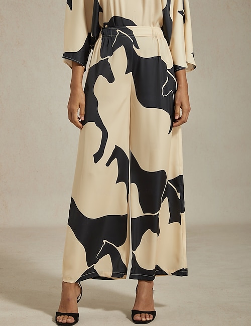 Modal Flare Cuff Blouse & Chiffon Pants Set Flare Cuff Modal Blouse Chiffon Pants Set