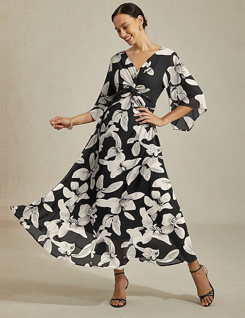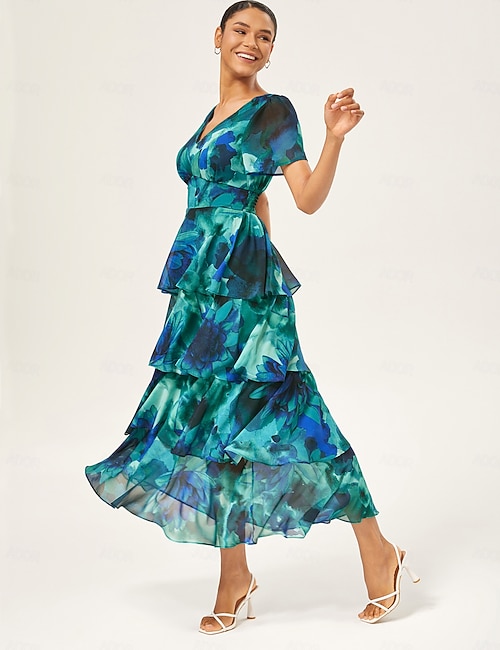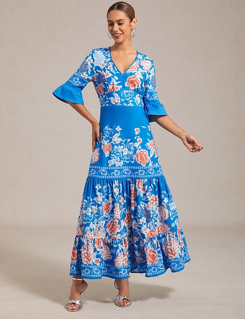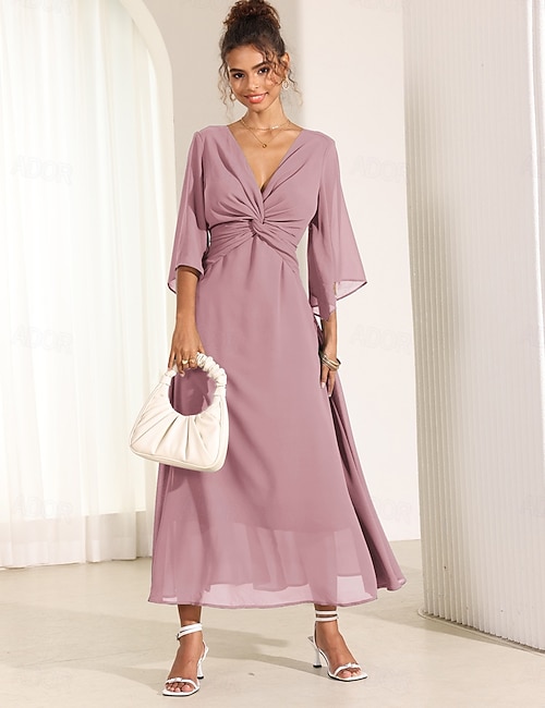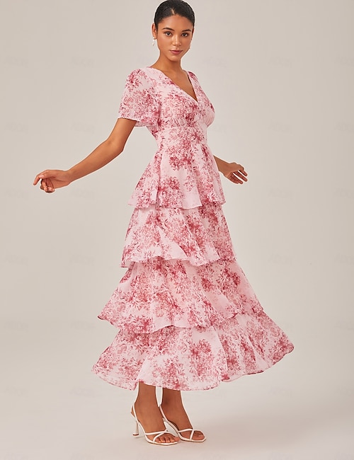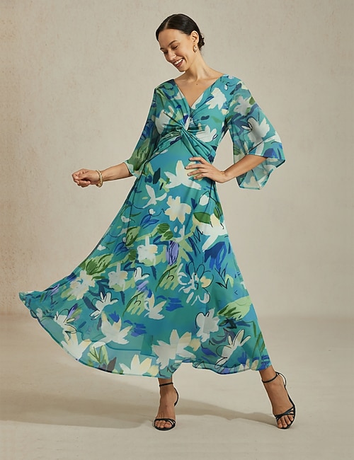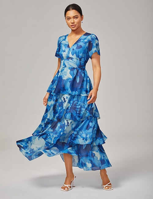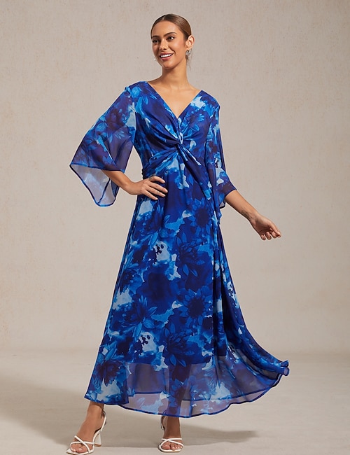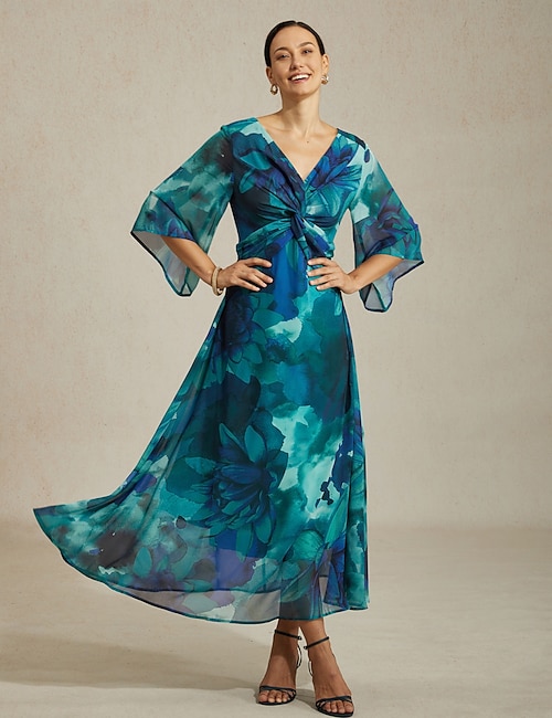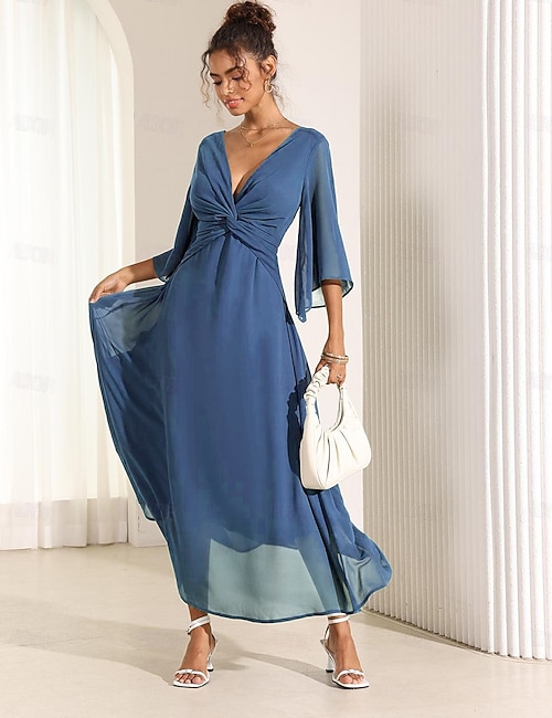 Chiffon V Neck Ruffle Twisted Maxi Dress