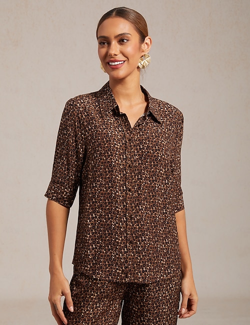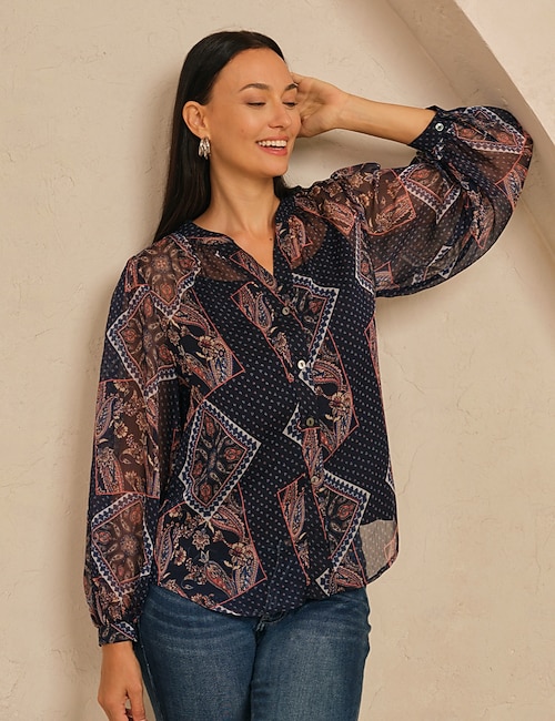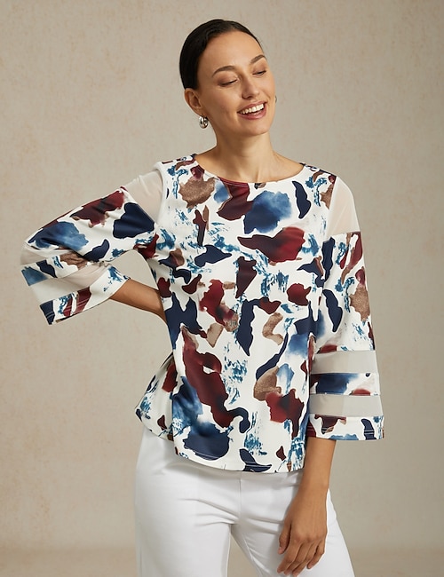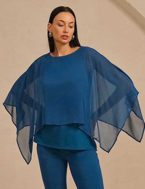Modal Chiffon Crew Neck Illusion Sleeve Shirt