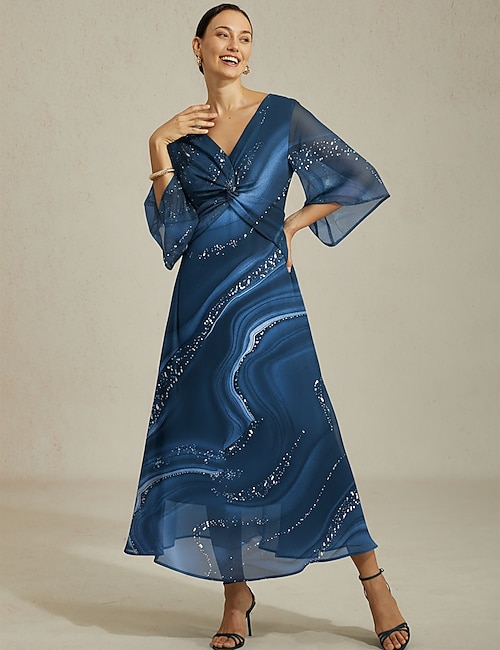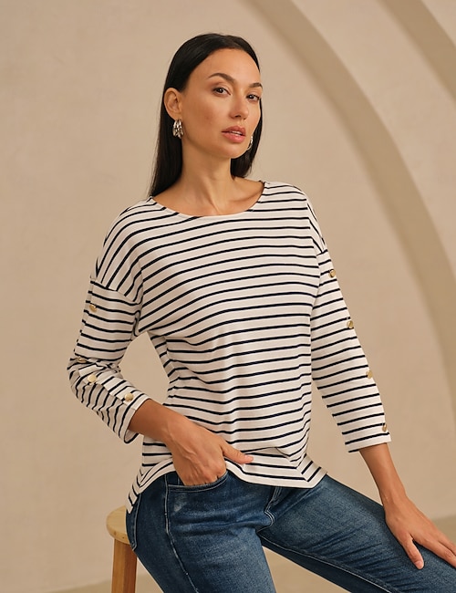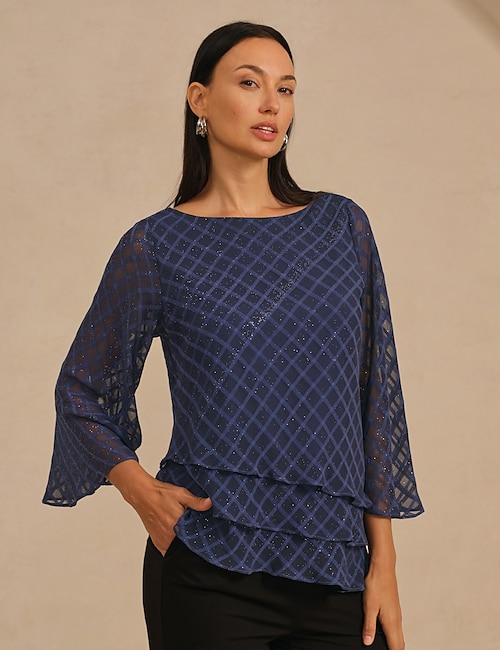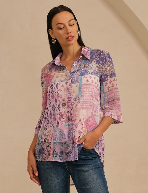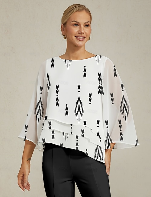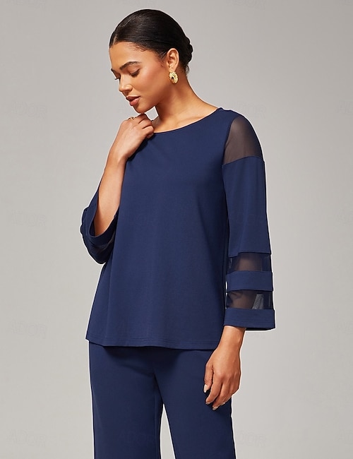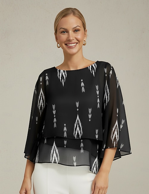 Chiffon Knit Patchwork 3 4 Sleeve Blouse