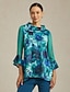 Geometric Floral Patchwork Stand Collar Maxi Dress