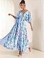 High Waist Short Sleeve Floral V Neck Maxi Dress