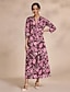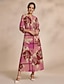 Botanical Belted V Neck Lantern Sleeve Maxi Dress