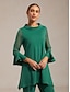 Conception à col montant avec manches à panneaux transparents et ourlet asymétrique.