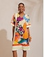 Confectionnée en satin lisse, cette mini-robe ample arbore un délicat imprimé floral et un décolleté en V flatteur. La taille élastique au dos offre une coupe confortable et ajustée pour une élégance naturelle.