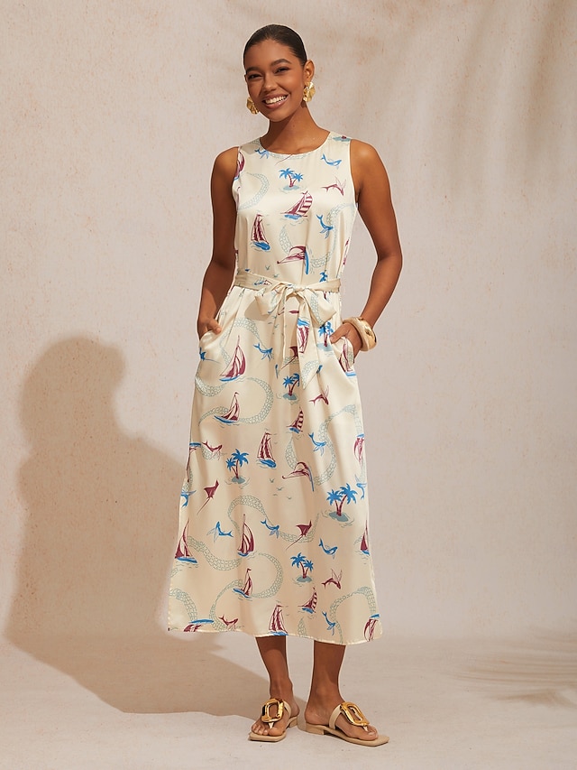 Col rond ; Fermeture éclair ; Ceinture ; Motifs océaniques ; Fente.