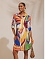 Col en V ; Taille cintrée ; Manches dolman ; Coupe trapèze ; Motif géométrique ; Color Block ;