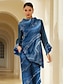 Tissu en mousseline fluide et transparent à imprimé galaxie bleue, col en V, nœud torsadé sur le devant