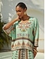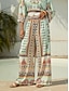 Col en V ; Fronces élastiques ; Détail de nœud ; Coupe droite ; Style ethnique vintage ; Motif géométrique.