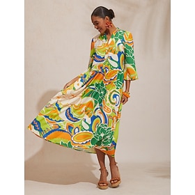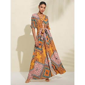 | Femmes Robe évasée Robe Imprimée Robe maxi Arc-en-ciel Manches courtes Totem National Impression Été Col en V Vacances Ethnique. XS S M | ||