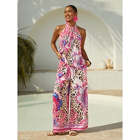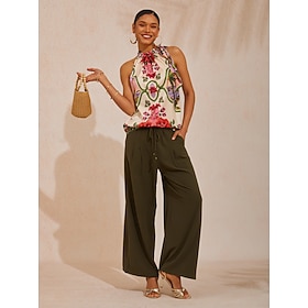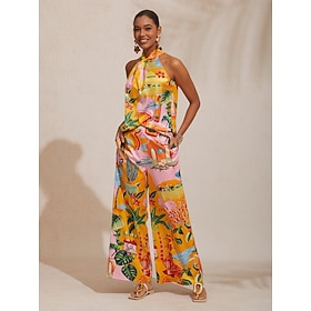 | haut fleuri en satin soyeux à motif palmier hawaïen | ||