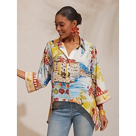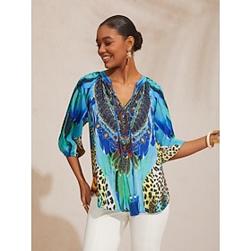 | Blouse d'été fluide en mousseline de soie à motif floral, style Santorin | ||