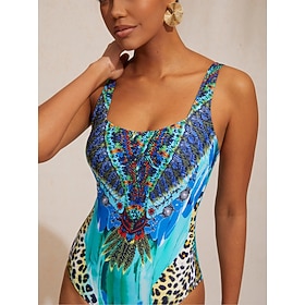 | Féminin Maillots de Bain Une Pièce Maillot de bain Coussin amovible Froncé Motif cachemire damassé bohème Bleu Carré Maillots de bain Imprimé nouveau Vacances Tenues de plage Chaussures de plage | ||