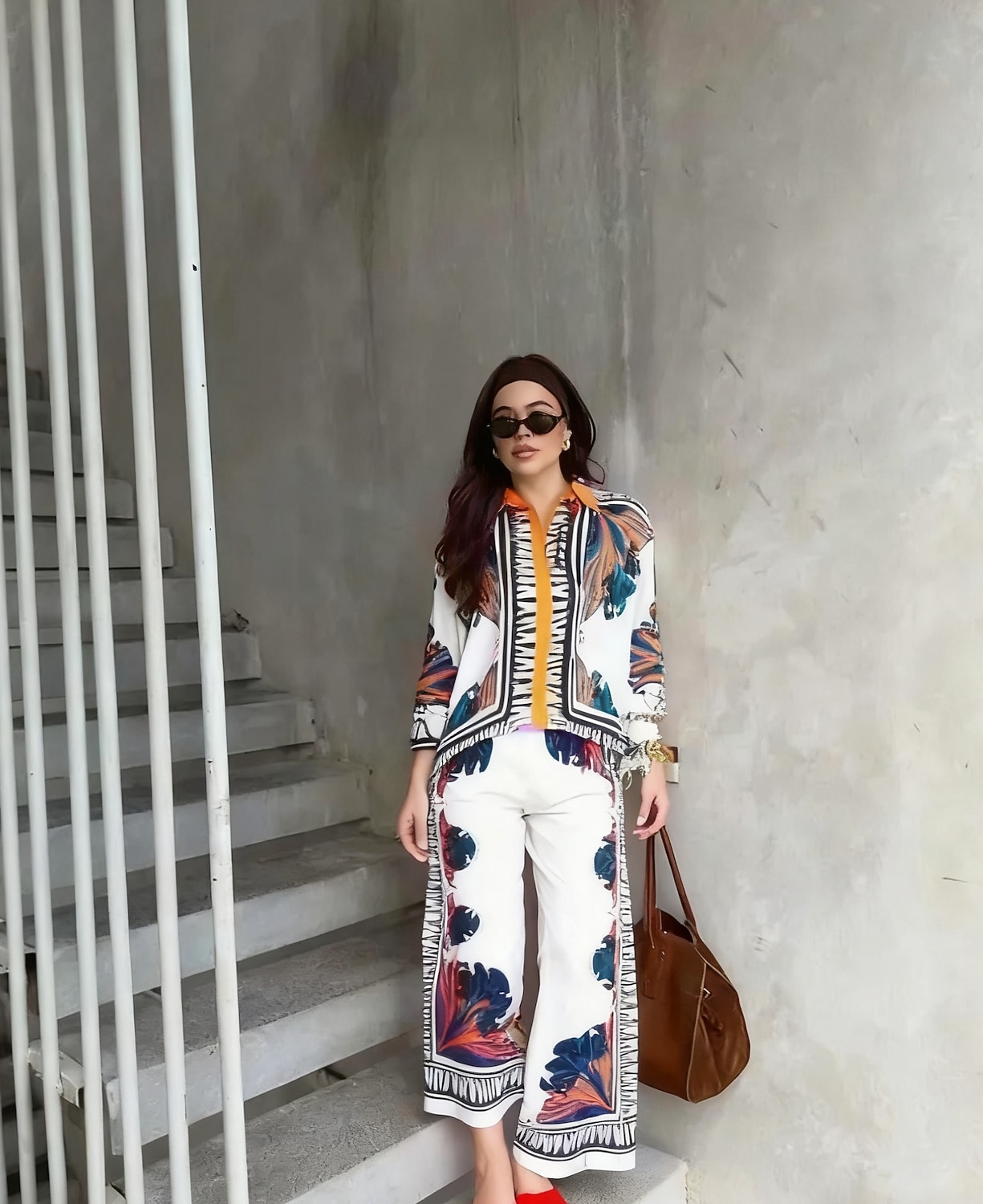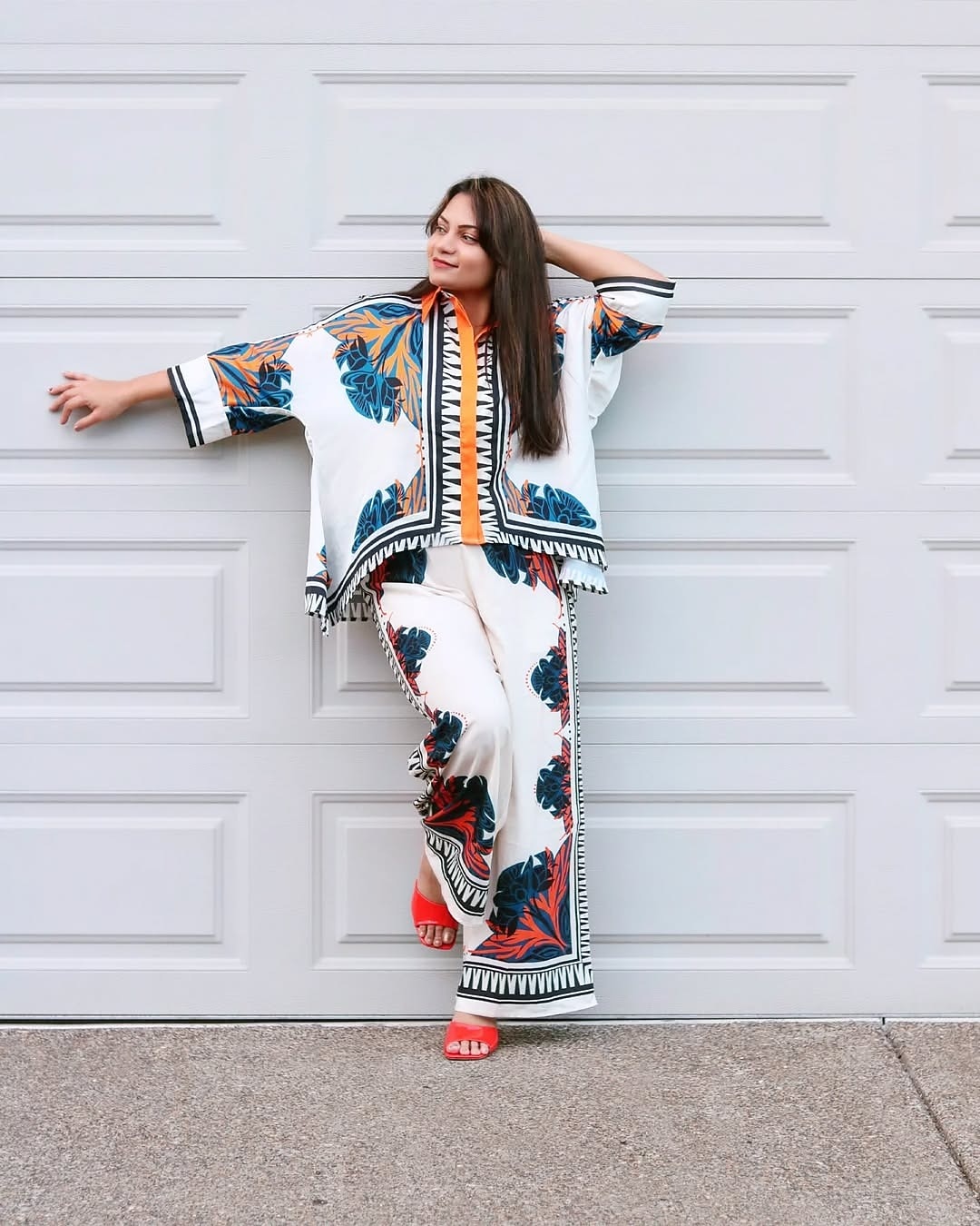 Love the bold orange collar contrast! It adds such a modern edge to the botanical print. Love the bold orange collar contrast! It adds such a modern edge to the botanical print.